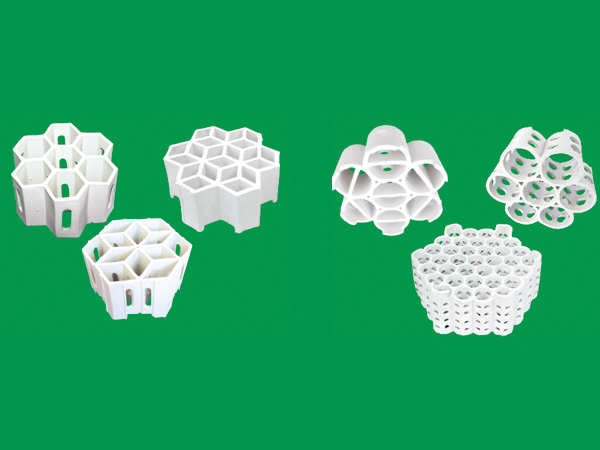 - 陶瓷規整填料與散堆填料相比具有效率高,降壓低,處理量大,持液量小,放大效應不明顯,操作彈性大等一系列優點。它由許多具有相同幾何形狀的填料單元體構成。陶瓷規整波紋
